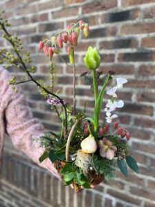 バスケットに球根付きチューリップ