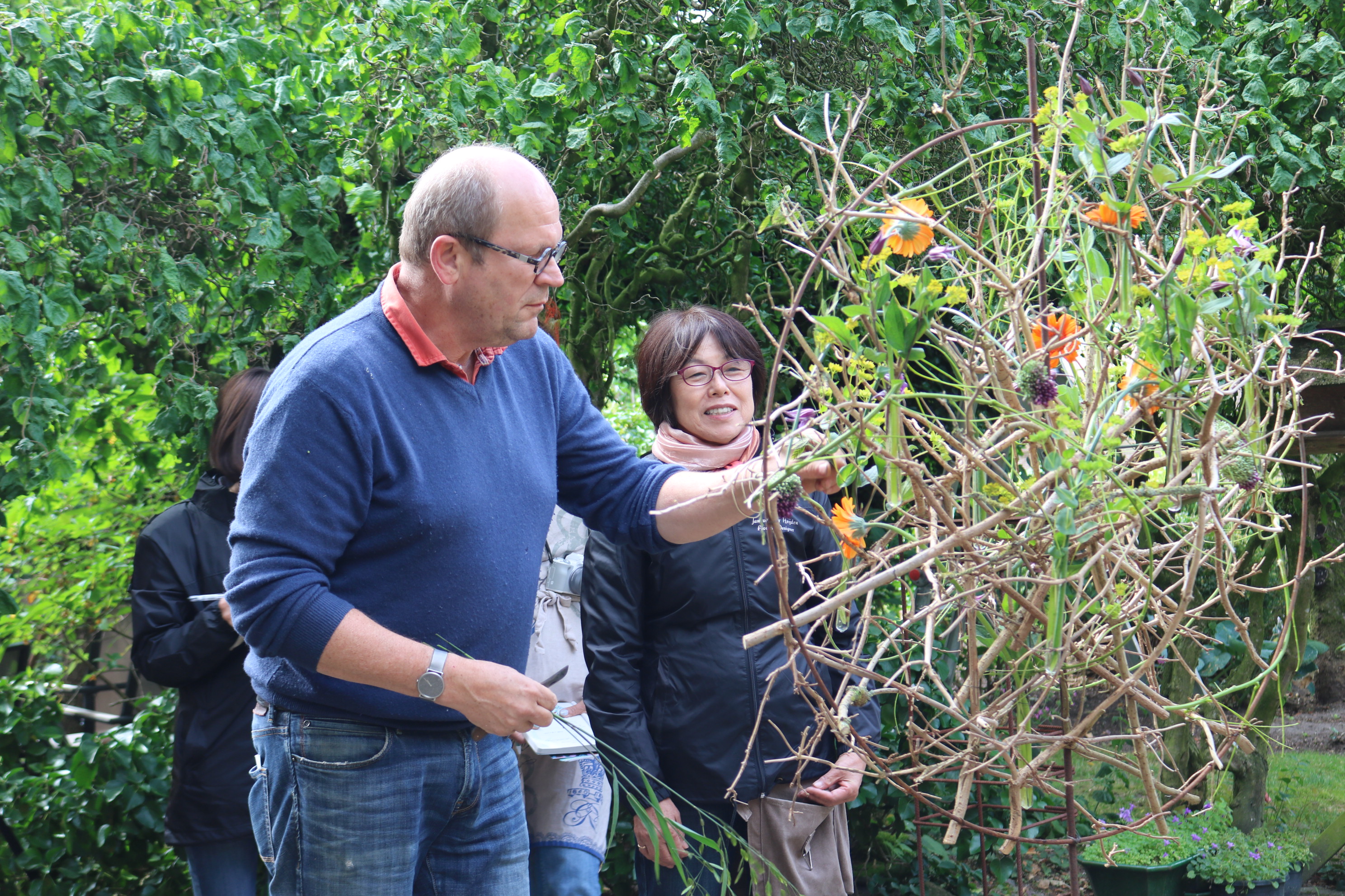 オランダ花留学 沢山の枝を使ってガーデンでレッスン