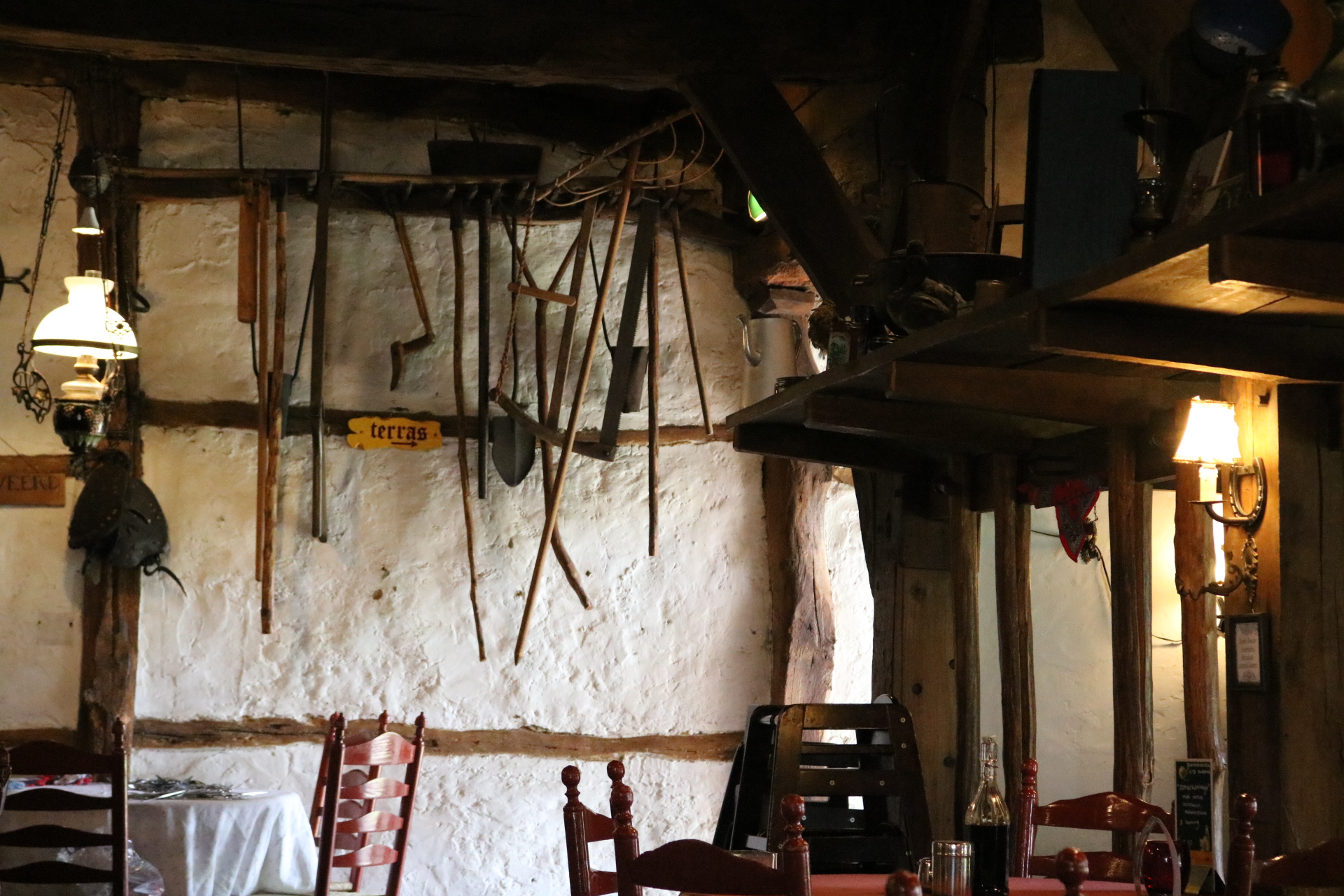 オランダの名物パンケーキは昔の農家の茅葺屋根の家屋のレストランで
