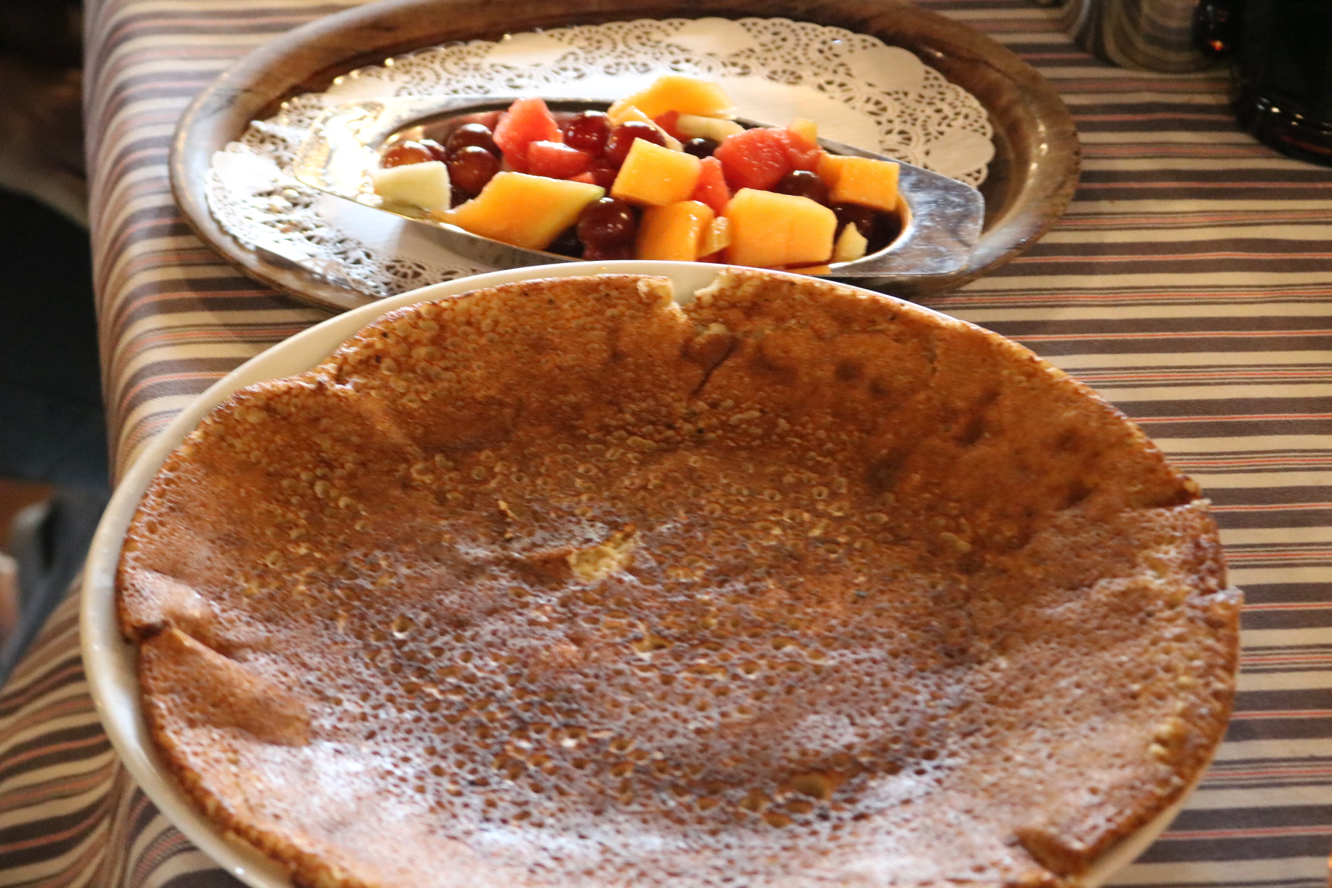 オランダの名物パンケーキは昔の農家の茅葺屋根の家屋のレストランで