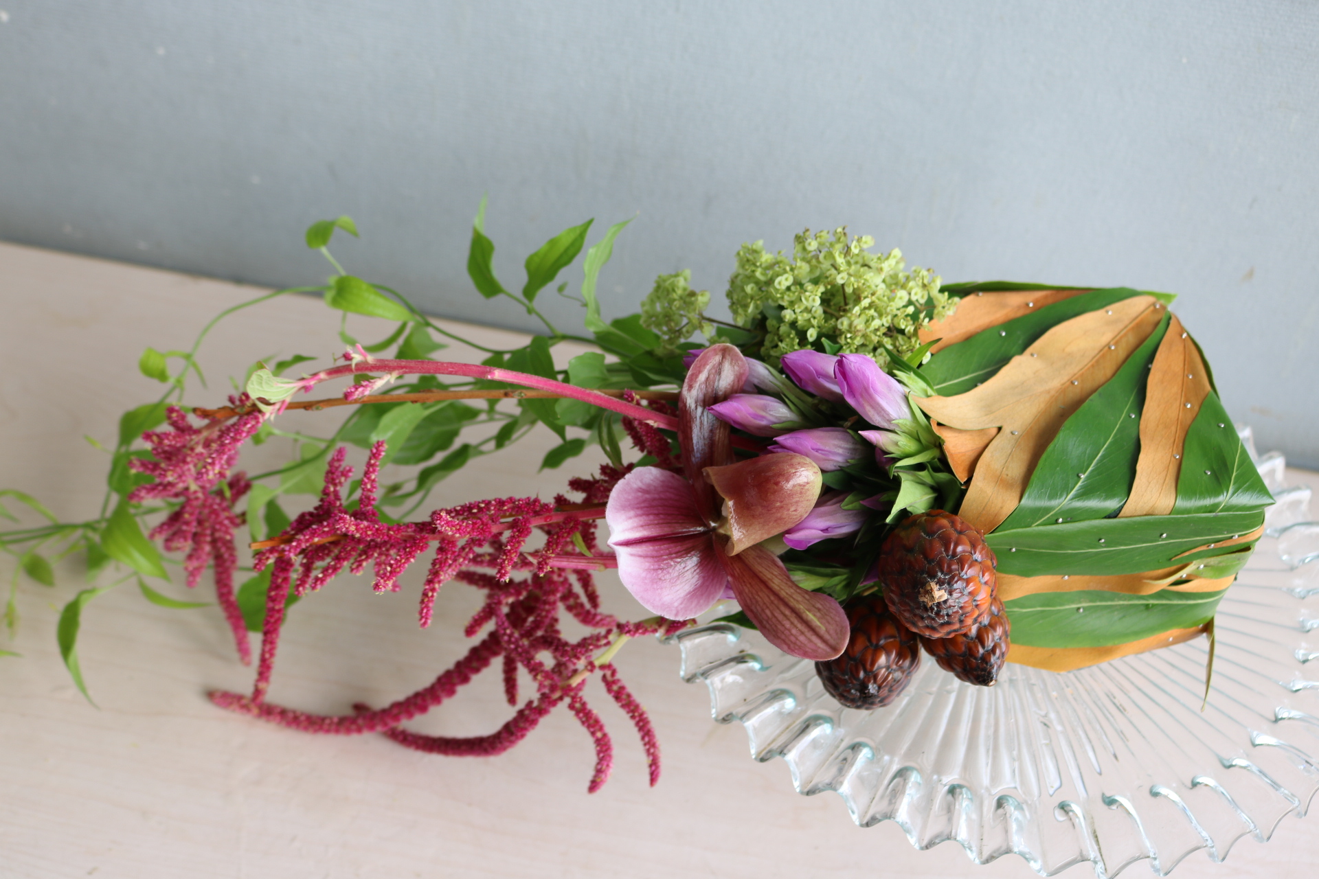 珍しい素材を使ってフラワーアレンジメントレッスン