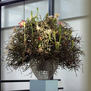 バスケットに球根付きチューリップ