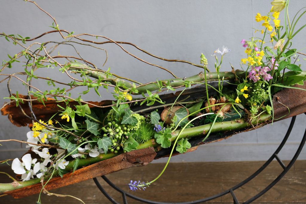 春の花を使ってネーチャーアレンジ・フラワーアレンジメント