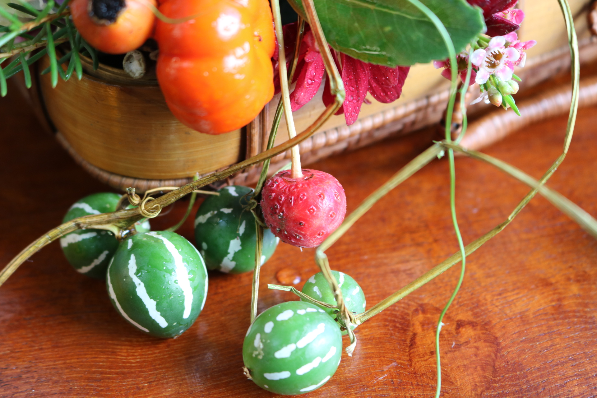 バスケットに秋の花、実をデザインしたら